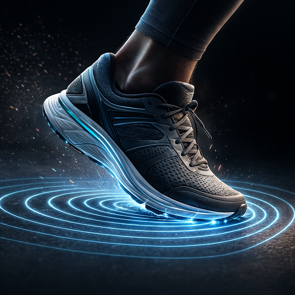 Innerhalb der Laufbewegung geht prinzipiell immer etwas Energie verloren. Doch das verhindert die Carbonplatte. Wenn Du dich vom Boden abstoßt, beugst du deinen Fuß und „belastest“ die Einlegesohlen. Die Sohle wird gespannt und dadurch wird die eigentlich verlorene, passive Energie von der Sohle gespeichert und in zusätzliche kinetische Energie umgewandelt. Deine Explosivkraft erhöht sich und du kannst deine Leistung steigern! Wie bei einem "Trampolin-Effekt".